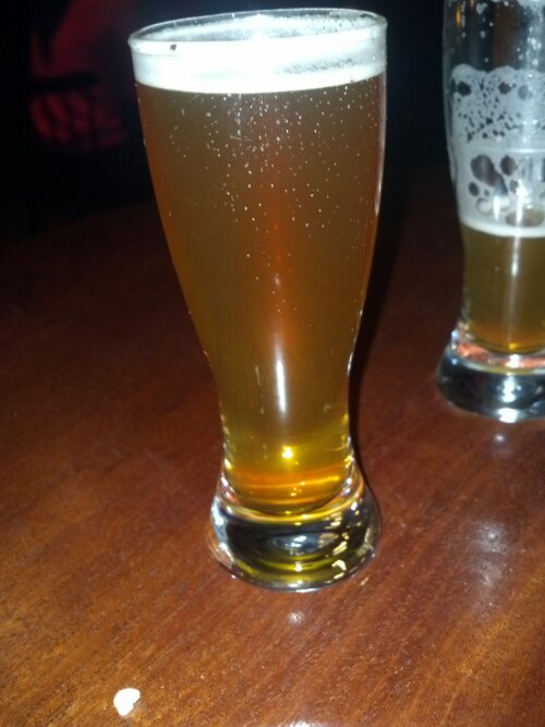 This double IPA has a light copper color with a white head on it. The smell is a citrus to the beer. The taste is a strong citrus and carbonation with a dry hop to mango aftertaste. It is pretty drinkable beer.