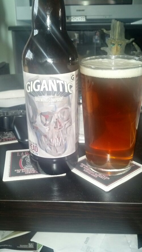 In this beer blog, we are going to get into another beer from Gigantic.  The beer is called Whole In The Head Imperial IPA.  If you read my last beer blog on their IPA, you know the history.  If you have not read the last post, please, read the post on their IPA.  Let us get into the beer.